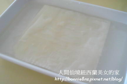 將越南春捲皮泡在溫水中約10秒至柔軟。