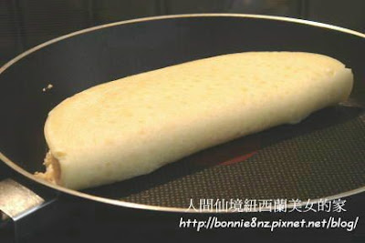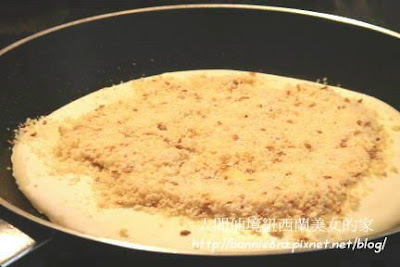 我是用20cm平底不沾鍋煎2片,所以餅皮較厚,