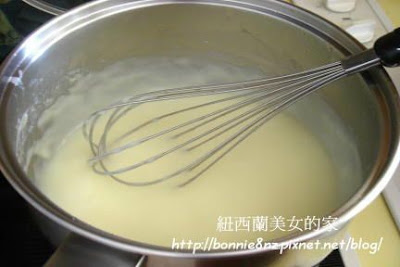 另一鍋加入奶油,以小火煮溶再加入麵粉拌勻。