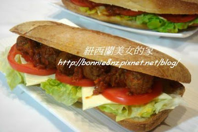 放上生菜、蕃茄、起士、牛肉丸,淋上醬料即可。