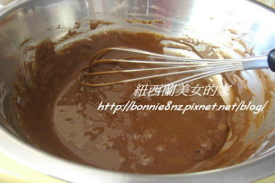 再混合過篩的低筋麵粉、泡打粉、可可粉 ,